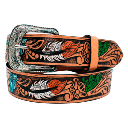 El cinturón decorado color de 40 mm está elaborado en vaqueta de alta calidad que brinda gran resistencia y confort. Su diseño vaquero resalta por su acabado artesanal con detalles decorativos que aportan estilo. Incorpora hebilla de acero que asegura un ajuste firme y seguro. Es un accesorio duradero y funcional, ideal para uso diario con un toque tradicional distintivo.