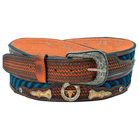 El cinturón green está elaborado en vaqueta de alta calidad que garantiza resistencia y confort. Su diseño incorpora decoración troquelada con detalles en hilo de nylon que resaltan su estilo artesanal. Cuenta con hebillas de acero que brindan ajuste firme y seguro. Es un accesorio duradero y funcional, ideal para uso diario con un acabado distintivo y gran presencia.