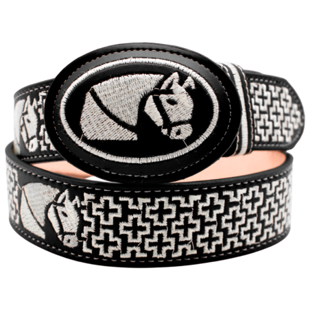 El cinturón para jinete bordado combina la elegancia del hilo bordado con la durabilidad de la vaqueta. Este accesorio, 100% resistente, está diseñado para quienes valoran la calidad y el estilo. Con un ajuste perfecto gracias a su diseño ajustable con ojillos, este cinturón es la opción ideal para cualquier jinete. Destaca en cada ocasión con un producto que ofrece comodidad y distinción. ¡Compra ahora!