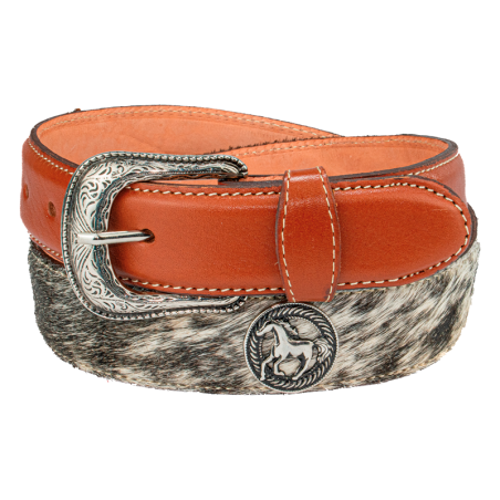 Cinturón para jinete de vaqueta con estoperoles y pelo