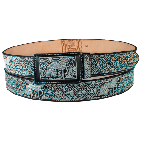 El cinturón para jinete metálico combina la robustez del hilo metálico con la calidad de la vaqueta. Diseñado para ser 100% resistente, este cinturón ofrece una durabilidad superior para cualquier uso. Su ajuste con ojillos permite un fit personalizado y cómodo, ideal para la actividad ecuestre. Eleva tu equipo con este cinturón que combina estilo y resistencia. ¡Compra hoy mismo!