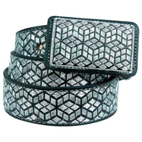 El cinturón para jinete metálico geométrico es la opción ideal para quienes buscan un estilo distintivo y duradero. Hecho de vaqueta con hilo metálico, es 100% resistente y diseñado para ofrecer una larga vida útil. Su ajuste con ojillos garantiza comodidad y un fit personalizado para cualquier jinete. Añade un toque de elegancia y robustez a tu equipo con este cinturón exclusivo. ¡Compra ahora!