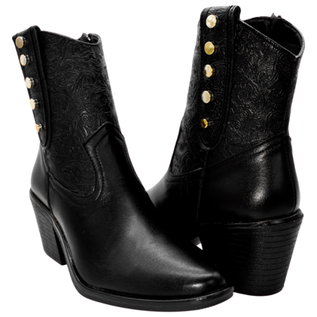 El botín para dama cincelado está elaborado en material sintético con acabado tipo piel que resalta su textura cincelada y su diseño elegante. Su estructura cómoda permite usarlo por largas jornadas, mientras su fabricación resistente ofrece durabilidad constante. Es un calzado estilo vaquero con presencia distinguida, ideal para complementar atuendos modernos, casuales o de salida con un toque firme y atractivo.